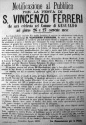 Keywords: Manifesto per la Festa di S. Vincenzo Ferreri (1899).jpg Manifesto della Festività in onore di san Vincenzo Ferreri a Gesualdo del 1899 scansione del manifesto 1989-08 Commissione per la Festa di S Vincenzo Ferreri <br/> PD-old Original upload log it wikipedia Manifesto_della_manifestazione_datato_1908 jpg wikitable - 2011-07-20 10 37 414×604× 95582 bytes Gopes il volo dell'Angelo di Gesualdo in provincia di Avellino Gesualdo Posters of Italy Saint Vincent Ferrer 1899 posters