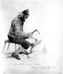 | Keywords: Mann med teksle NF.02411-001.jpg nb Gammel mann i folkedrakt arbeider med tverrøks teksle Akvarell av J Frich juni 1849 Numedal - Nore - Buskerud Arnold Vammen 75 år 1849 NF NF 02411-001 gammel-mann-i-folkedrakt-arbeider-med-tverrks Creator Joachim Frich PD-old-100 Uploaded with UploadWizard National costumes of Norway in art National costumes of Norway from Buskerud Woodworking hand tools Joachim Frich | ||||