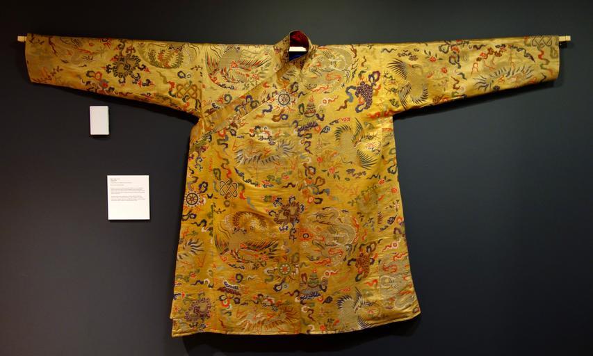 Keywords: Man's robe (chuba), Tibet, made in China, 19th century - Textile Museum of Canada - DSC00816.JPG en Exhibit in the Textile Museum of Canada 55 Centre Avenue Toronto Ontario Canada Photography was permitted in the museum without restriction 2013-07-04 14 00 23 own Daderot cc-zero Uploaded with UploadWizard Textiles in the Textile Museum of Canada Chuba