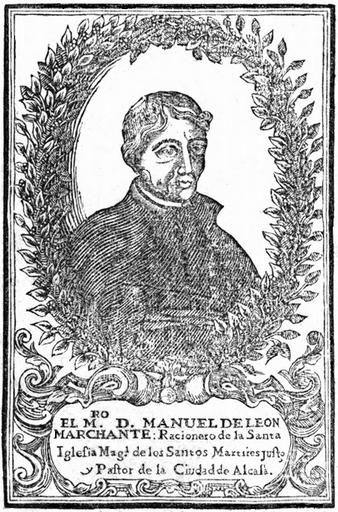 | Keywords: Manuel de León Marchante (1733).png Manuel de León Marchante Pastrana 1631 - Alcalá de Henares 1680 poeta y dramaturgo español del Siglo de Oro Desempeñó los puestos de Comisario del Santo Oficio de la Inquisición Capellán Real y del Colegio de Caballeros Manriques de la Universidad de Alcalá Racionero de la Iglesia Magistral de los Santos Justo y Pastor de Alcalá de Henares 1733 http //bidicam castillalamancha es/bibdigital/bidicam/i18n/consulta/registro cmd id 11499 Fernando Monge recopilador Obras poeticas posthumas / que a diversos assumptos escriuió el maestro don Manuel de Leon Marchante ; Poesias sagradas tomo segundo Madrid Gabriel del Barrio; 1733 Fernando Monge recopilador PD-old-70-1923 other versions PD-old-70-1923 1733 books single pages 1733 engravings Manuel de León Marchante Portrait paintings of men of Spain 18th-century portrait paintings in Spain 18th-century religious paintings in Spain Books published in Madrid Book pages in Spanish Spanish language literature Files by User Raimundo Pastor retratos |