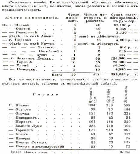 | Keywords: Manufactory Velikiye Luki 1852.png ru К се едине XIX в Великие Луки азвивался как емесленный и кожевенный цент С авнительные таблицы по го одам Псковской губе нии на 1852 год 1 Численность емесленников; 2 Число кожевенных заводов Военно-статистическое обоз ение Российской импе ии Псковская губе ния Т III Ч 2 СПб 1852 С 311 313 Депа тамент Гене ального Штаба 1852 PD-RusEmpire History of Velikiye Luki PD-old | ||||