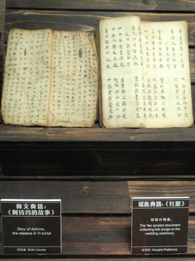 Keywords: Manuscripts in the Yunnan Nationalities Museum - DSC03920.JPG Yi and Yao manuscripts Manuscripts / writing systems in the Yunnan Nationalities Museum Kunming Yunnan China I took this photograph 2011-08-13 00 49 58 Daderot Public domain Manuscripts in the Yunnan Nationalities Museum Yi writing Yao writing |