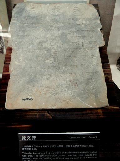 | Keywords: Manuscripts in the Yunnan Nationalities Museum - DSC03959.JPG Tombstone inscribed in Sanskrit found in Dali area Manuscripts / writing systems in the Yunnan Nationalities Museum Kunming Yunnan China I took this photograph 2011-08-13 01 04 09 Daderot Public domain Manuscripts in the Yunnan Nationalities Museum |