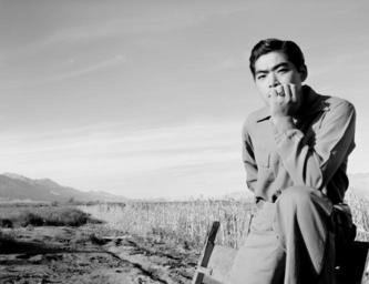 | Keywords: Manzanar portrait Tom Kobayashi 00218u.jpg Manzanar War Relocation Center Owens Valley California 1943 LOC-image ppprs 00218 Restoration by trialsanderrors http //www flickr com/photos/trialsanderrors/2771084043/ Ansel Adams Portrait of Tom Kobayashi at Manzanar 1943 1943 Creator Ansel Adams Rights Advisory No known restrictions on publication 1 photographic print gelatin silver 1 negative safety film accession number Reproduction Number LC-DIG-ppprs-00245 b w digital file from original print LC-DIG-ppprs-00218 b w digital file from original neg LC-A351-T01-3-M-20 b w film dup neg Call Number LOT 10479-1 no 25 P P institution Library of Congress Prints and Photographs Division Washington D C 20540 USA Title transcribed from Ansel Adams' caption on verso of print Caption on negative sleeve includes the phrase looking at camera Original neg no LC-A351-3-M-20 Gift; Ansel Adams; 1965-1968 Forms part of Manzanar War Relocation Center photographs Ansel Adams Portrait of Tom Kobayashi at Manzanar 1943 jpg 100 PD-Adams-Manzanar Photographs by Ansel Adams of Manzanar War Relocation Center Black and white portrait photographs of men Men looking at viewer Japanese Americans Japanese-American internees Sitting with raised knees Sitting with hand on head Black and white photographs |
