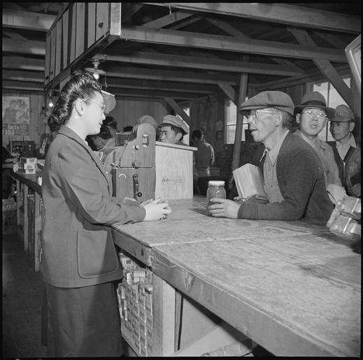 Keywords: Manzanar Relocation Center, Manzanar, California. An elderly evacuee purchases peanut butter for a . . . - NARA - 536927.tif Scope and content The full caption for this photograph reads Manzanar Relocation Center Manzanar California An elderly evacuee purchases peanut butter for a between meal snack All meals for the residents are served in mess halls and are merely supplemented by tidbits which the evacuees prepared in their own barracks General notes 536927 Local identifier 210-G-B188 Department of the Interior War Relocation Authority 02/16/1944 - 06/30/1946 NARA-Author Stewart Francis War Relocation Authority photographer Photographer 8464475 <br /> Still Picture Records Section Special Media Archives Services Division NWCS-S National Archives at College Park 8601 Adelphi Road College Park MD 20740-6001 1943-02-12 Record group Record Group 210 Records of the War Relocation Authority 1941 - 1989 Record group ARC 537 Central Photographic File of the War Relocation Authority compiled 1942 - 1945 Series ARC 536000 File unit File unit ARC Variant control numbers NAIL Control Number NWDNS-210-G-B188 yes Other versions <gallery> File Manzanar_Relocation_Center _Manzanar _California _An_elderly_evacuee_purchases_peanut_butter_for_a_ _ _ _-_NARA_-_536927 tif tif File Manzanar_Relocation_Center _Manzanar _California _An_elderly_evacuee_purchases_peanut_butter_for_a_ _ _ _-_NARA_-_536927 jpg jpg </gallery> NARA-cooperation PD-USGov Manzanar War Relocation Center Mess halls NARA TIF images with categorized JPGs |