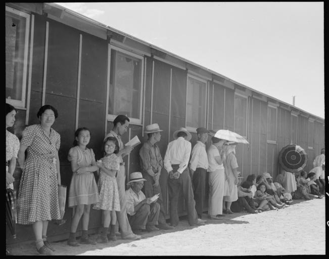 | Keywords: Manzanar Relocation Center, Manzanar, California. Part of a line waiting for lunch outside the mess . . . - NARA - 537968.jpg Scope and content The full caption for this photograph reads Manzanar Relocation Center Manzanar California Part of a line waiting for lunch outside the mess hall at noon General notes 537968 Local identifier 210-G-C671 Department of the Interior War Relocation Authority 02/16/1944 - 06/30/1946 NARA-Author Lange Dorothea 1895-1965 Photographer 1372774 <br /> Still Picture Records Section Special Media Archives Services Division NWCS-S National Archives at College Park 8601 Adelphi Road College Park MD 20740-6001 1942-07-01 Record group Record Group 210 Records of the War Relocation Authority 1941 - 1989 Record group ARC 537 Central Photographic File of the War Relocation Authority compiled 1942 - 1945 Series ARC 536000 File unit File unit ARC Variant control numbers NAIL Control Number NWDNS-210-G-C671 Other versions <gallery> File Manzanar_Relocation_Center _Manzanar _California _Part_of_a_line_waiting_for_lunch_outside_the_mess_ _ _ _-_NARA_-_537968 tif tif File Manzanar_Relocation_Center _Manzanar _California _Part_of_a_line_waiting_for_lunch_outside_the_mess_ _ _ _-_NARA_-_537968 jpg jpg </gallery> NARA-cooperation PD-USGov Photographs by Dorothea Lange of Manzanar War Relocation Center Mess halls |