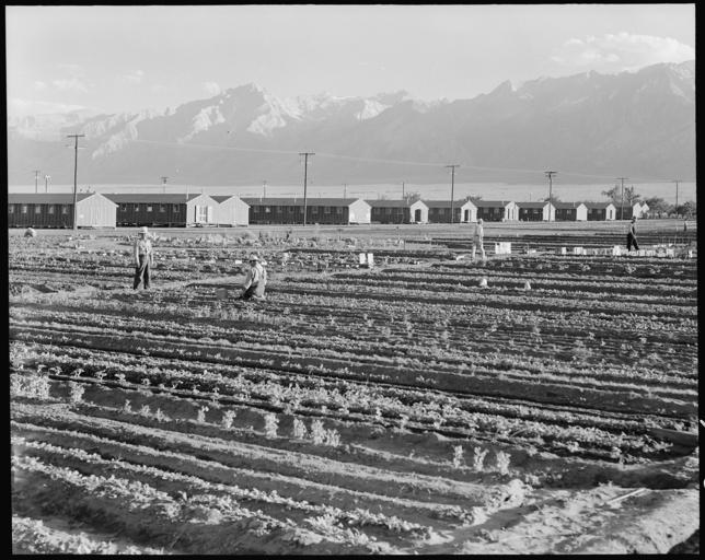 | Keywords: Manzanar Relocation Center, Manzanar, California. Evacuees of Japanese ancestry are growing flouris . . . - NARA - 537987.jpg Scope and content The full caption for this photograph reads Manzanar Relocation Center Manzanar California Evacuees of Japanese ancestry are growing flourishing truck crops for their own use in their hobby gardens These crops are grown in plots 10 x 50 feet between blocks of barrack at this War Relocation Authority center General notes 537987 Local identifier 210-G-C690 Department of the Interior War Relocation Authority 02/16/1944 - 06/30/1946 NARA-Author Lange Dorothea 1895-1965 Photographer 1372774 <br /> Still Picture Records Section Special Media Archives Services Division NWCS-S National Archives at College Park 8601 Adelphi Road College Park MD 20740-6001 1942-07-02 Record group Record Group 210 Records of the War Relocation Authority 1941 - 1989 Record group ARC 537 Central Photographic File of the War Relocation Authority compiled 1942 - 1945 Series ARC 536000 File unit File unit ARC Variant control numbers NAIL Control Number NWDNS-210-G-C690 Other versions <gallery> File Manzanar_Relocation_Center _Manzanar _California _Evacuees_of_Japanese_ancestry_are_growing_flouris_ _ _ _-_NARA_-_537987 tif tif File Manzanar_Relocation_Center _Manzanar _California _Evacuees_of_Japanese_ancestry_are_growing_flouris_ _ _ _-_NARA_-_537987 jpg jpg </gallery> NARA-cooperation PD-USGov Photographs by Dorothea Lange of Manzanar War Relocation Center Fields in California Manzanar 1942 in California NARA images of Inyo County California Black and white photographs of California |