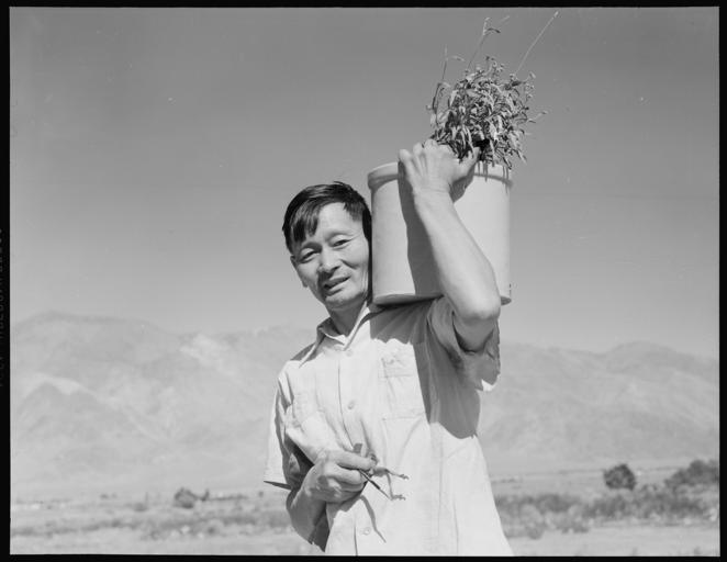 | Keywords: Manzanar Relocation Center, Manzanar, California. George J. Yokomizo, hybridizer for the guyaule ru . . . - NARA - 538028.jpg Scope and content The full caption for this photograph reads Manzanar Relocation Center Manzanar California George J Yokomizo hybridizer for the guyaule rubber experment project outside the lath house with one of the guyaule plants from which he hopes to develop seed General notes 538028 Local identifier 210-G-C734 Department of the Interior War Relocation Authority 02/16/1944 - 06/30/1946 NARA-Author Lange Dorothea 1895-1965 Photographer 1372774 <br /> Still Picture Records Section Special Media Archives Services Division NWCS-S National Archives at College Park 8601 Adelphi Road College Park MD 20740-6001 1942-06-29 Record group Record Group 210 Records of the War Relocation Authority 1941 - 1989 Record group ARC 537 Central Photographic File of the War Relocation Authority compiled 1942 - 1945 Series ARC 536000 File unit File unit ARC Variant control numbers NAIL Control Number NWDNS-210-G-C734 Other versions <gallery> File Manzanar_Relocation_Center _Manzanar _California _George_J _Yokomizo _hybridizer_for_the_guyaule_ru_ _ _ _-_NARA_-_538028 tif tif File Manzanar_Relocation_Center _Manzanar _California _George_J _Yokomizo _hybridizer_for_the_guyaule_ru_ _ _ _-_NARA_-_538028 jpg jpg </gallery> NARA-cooperation PD-USGov Photographs by Dorothea Lange of Manzanar War Relocation Center |