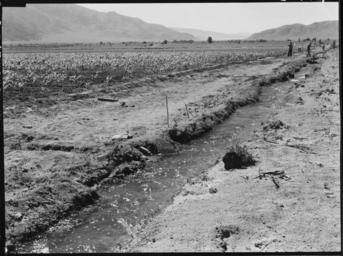 | Keywords: Manzanar Relocation Center, Manzanar, California. Looking south from this War Relocation Authority . . . - NARA - 538041.jpg Scope and content The full caption for this photograph reads Manzanar Relocation Center Manzanar California Looking south from this War Relocation Authority center The project farm lies in two main sections This is farm Number 1 nearest to the Center Irrigation water is drawn from George's Creek and from Bear Creek Up to this time approximately 125 acres of land are under cultivation and in various truck crops General notes 538041 Local identifier 210-G-C747 Department of the Interior War Relocation Authority 02/16/1944 - 06/30/1946 NARA-Author Lange Dorothea 1895-1965 Photographer 1372774 <br /> Still Picture Records Section Special Media Archives Services Division NWCS-S National Archives at College Park 8601 Adelphi Road College Park MD 20740-6001 1942-06-30 Record group Record Group 210 Records of the War Relocation Authority 1941 - 1989 Record group ARC 537 Central Photographic File of the War Relocation Authority compiled 1942 - 1945 Series ARC 536000 File unit File unit ARC Variant control numbers NAIL Control Number NWDNS-210-G-C747 Other versions <gallery> File Manzanar_Relocation_Center _Manzanar _California _Looking_south_from_this_War_Relocation_Authority_ _ _ _-_NARA_-_538041 tif tif File Manzanar_Relocation_Center _Manzanar _California _Looking_south_from_this_War_Relocation_Authority_ _ _ _-_NARA_-_538041 jpg jpg </gallery> NARA-cooperation PD-USGov Photographs by Dorothea Lange of Manzanar War Relocation Center Fields in California Manzanar Owens Valley Manzanar 1942 in California NARA images of Inyo County California Black and white photographs of landscapes Owens Valley Black and white photographs of California |