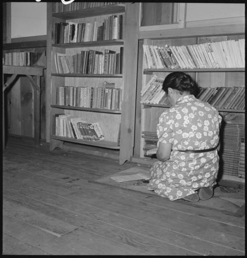 | Keywords: Manzanar Relocation Center, Manzanar, California. A corner in the library at this War Relocation Au . . . - NARA - 538176.jpg Scope and content The full caption for this photograph reads Manzanar Relocation Center Manzanar California A corner in the library at this War Relocation Authority center for evacuees of Japanese ancestry This section contains books in the Japanese lanuage most of which are translations of English classics General notes 538176 Local identifier 210-G-C894 Department of the Interior War Relocation Authority 02/16/1944 - 06/30/1946 NARA-Author Lange Dorothea 1895-1965 Photographer 1372774 <br /> Still Picture Records Section Special Media Archives Services Division NWCS-S National Archives at College Park 8601 Adelphi Road College Park MD 20740-6001 1942-07-01 Record group Record Group 210 Records of the War Relocation Authority 1941 - 1989 Record group ARC 537 Central Photographic File of the War Relocation Authority compiled 1942 - 1945 Series ARC 536000 File unit File unit ARC Variant control numbers NAIL Control Number NWDNS-210-G-C894 Other versions <gallery> File Manzanar_Relocation_Center _Manzanar _California _A_corner_in_the_library_at_this_War_Relocation_Au_ _ _ _-_NARA_-_538176 tif tif File Manzanar_Relocation_Center _Manzanar _California _A_corner_in_the_library_at_this_War_Relocation_Au_ _ _ _-_NARA_-_538176 jpg jpg </gallery> NARA-cooperation PD-USGov Photographs by Dorothea Lange of Manzanar War Relocation Center Library bookshelves in the United States Black and white photographs of women Flowered dresses People sitting on the floor |