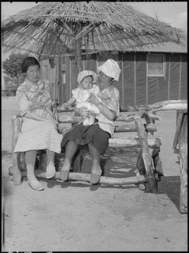 | Keywords: Manzanar Relocation Center, Manzanar, California. Left to right, Mrs. T. Kakehashi, Mitsoshi Shijo, . . . - NARA - 538511.jpg Scope and content The full caption for this photograph reads Manzanar Relocation Center Manzanar California Left to right Mrs T Kakehashi; Mitsoshi Shijo 5 months old and Mrs M Shijo seated on a rustic bench undeer a twig umbrella built by George S Takemura landscape artist from West Los Angeles California These evauees of Japanese ancestry are being housed for the duration at Manzanar a War Relocation Authority center General notes 538511 Local identifier 210-G-D543 Department of the Interior War Relocation Authority 02/16/1944 - 06/30/1946 NARA-Author Stewart Francis War Relocation Authority photographer Photographer 8464475 <br /> Still Picture Records Section Special Media Archives Services Division NWCS-S National Archives at College Park 8601 Adelphi Road College Park MD 20740-6001 1942-05-31 Record group Record Group 210 Records of the War Relocation Authority 1941 - 1989 Record group ARC 537 Central Photographic File of the War Relocation Authority compiled 1942 - 1945 Series ARC 536000 File unit File unit ARC Variant control numbers NAIL Control Number NWDNS-210-G-D543 Other versions <gallery> File Manzanar_Relocation_Center _Manzanar _California _Left_to_right _Mrs _T _Kakehashi _Mitsoshi_Shijo _ _ _ _-_NARA_-_538511 tif tif File Manzanar_Relocation_Center _Manzanar _California _Left_to_right _Mrs _T _Kakehashi _Mitsoshi_Shijo _ _ _ _-_NARA_-_538511 jpg jpg </gallery> NARA-cooperation PD-USGov Manzanar War Relocation Center |