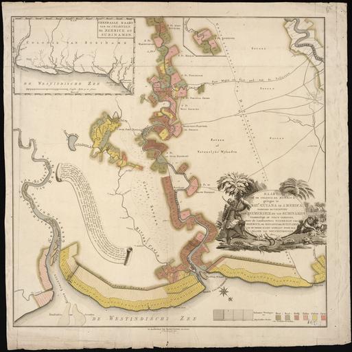| Keywords: Map of the Colony of Berbice Located in Batavian Guiana in America between the Colonies of Demerara and Suriname WDL11338.png Artwork ru Бухен еде Ф ид их фон асцвет тво чества около 1795 года fr Bouchenroeder Friedrich von actif en 1795 env en Bouchenroeder Friedrich von flourished circa 1795 zh 弗里德里希·冯·鲍奇罗伊德,全盛时 约 1795 年 pt Bouchenroeder Friedrich von prosperou por volta de 1795 ar بوتشينرودر، فريدريك فون، ازدهر حوالي 1795 es Bouchenroeder Friedrich von prosperó circa 1795 ru Ка та колонии Бе биче асположенной в Батавианской Гвиане в Аме ике между колониями Деме а а и Су инам fr Carte de la colonie de Berbice située en Guyane batave en Amérique entre les colonies de Demerara et du Suriname en Map of the Colony of Berbice Located in Batavian Guiana in America between the Colonies of Demerara and Suriname zh 位于德梅拉拉与苏里南殖民 之间的美洲巴达维亚 亚那的伯比斯殖民 图 pt Mapa da colônia de Berbice localizada na Guiana batava na América entre as colônias de Demerara e Suriname ar خريطة مستعمرة بيربيس الواقعة في غويانا الباتافية في أمريكا بين مستعمرتي ديميرارا وسورينام ru а этой под обной ка те составленной в 1802 году голландским офице ом и изданной известной амсте дамской ка тог афической издательской фи мой Ковенс и о тье изоб ажена голландская колония Бе биче начала XIX века Колония Бе биче асположенная вдоль еки Бе биче на те ито ии сов еменной Гайаны была основана в 1627 году под уп авлением Голландской Вест-Индской компании а ка те-в езке в ве хнем левом углу о иенти ованной таким об азом что севе находится внизу показано местоположение Бе биче относительно Су инама большей по азме у колонии Севе на ка те находится внизу сп ава П иводятся названия к упных плантаций и сельскохозяйственных земель кото ые обозначены в виде п онуме ованных п ямоугольных участков асположенных п еимущественно вдоль еки и мо ского побе ежья Цветом обозначены азличные вы ащиваемые культу ы в том числе лес кофе саха хлопок и какао Также на ка те изоб ажены саванны почтовые до оги индейские т опы п оекти уемый канал индейские поселения фо ты и небольшой населенный пункт овый Амсте дам в устье еки Бе биче В 1815 году после заве шения аполеоновских войн колония пе ешла под власть б итанцев кото ые объединили ее с соседней колонией Б итанской Гвианой сов еменная Гайана <br> иде ланды - Колонии fr Cette carte détaillée de 1802 dessinée par un officier de l'armée néerlandaise et publiée par l'éminente maison d'édition cartographique d'Amsterdam Covens et Mortier montre la colonie néerlandaise de Berbice telle qu'elle était au début du XIX<sup>e</sup> siècle Située le long du fleuve Berbice au Guyana actuel Berbice fut établie en 1627 sous l'autorité de la Compagnie néerlandaise des Indes occidentales Le cartouche en haut à gauche orienté avec le nord en bas montre Berbice par rapport à la colonie plus grande du Suriname La carte principale est orientée avec le nord en bas à droite Les noms des grandes plantations sont indiqués et les terres agricoles sont représentées par des parcelles numérotées rectangulaires situées principalement le long de la rivière et du bord de mer Des couleurs permettent de distinguer les différentes cultures notamment le bois le café le sucre le coton et le cacao Des savanes des routes postières des sentiers indiens un canal projeté des habitations indiennes des forts et la petite colonie de New Amsterdam à l'embouchure du fleuve Berbice sont également représentés sur la carte En 1815 à la fin des guerres napoléoniennes la propriété de la colonie passa aux Britanniques qui la fusionnèrent avec la colonie voisine de la Guyana britannique aujourd'hui Guyana <br>Pays-Bas--Colonies en This detailed 1802 map drawn by a Dutch military officer and issued by the distinguished Amsterdam cartographic publishing firm of Covens and Mortier shows the Dutch colony of Berbice as it appeared at the beginning of the 19th century Located along the Berbice River in present-day Guyana Berbice was established in 1627 under the authority of the Dutch West India Company The inset map in the upper left oriented with north at the bottom shows Berbice in relation to Suriname its larger sister colony The main map is oriented with north to the lower right The names of the major plantations are given with agricultural land indicated by the numbered rectangular plots which are located mainly along the river and the seacoast Colors are used to show the different crops under cultivation which include wood coffee sugar cotton and cacao Also shown are savannas post roads Indian footpaths a projected canal Indian dwellings forts and the small settlement of New Amsterdam at the mouth of the Berbice River 