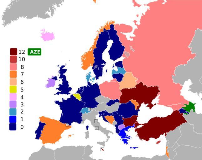Keywords: Map of Eurovision 2010 Points for Azerbaijan.svg en Points for Azerbaijan at Eurovision 2010 Azerbaijan was represented by Safura's Drip-Drop song own Interfase 2012-06-01 SVG maps of Europe
