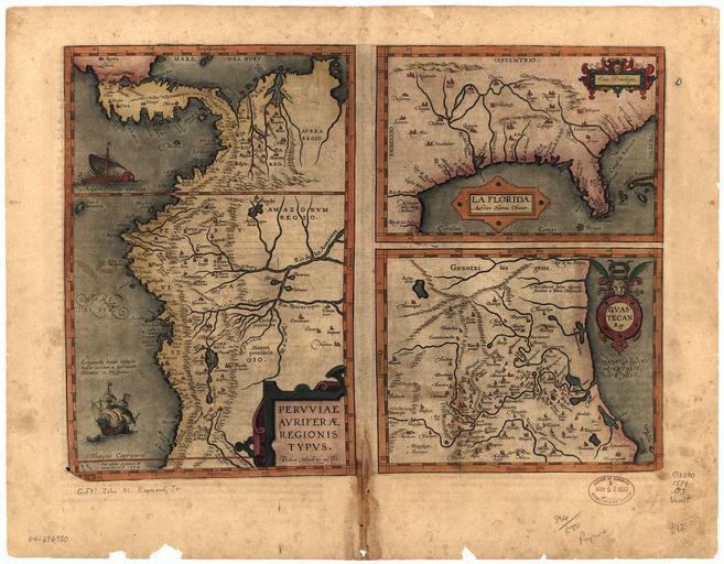 | Keywords: Map of the Gold-Producing Region of Peru. Florida. The Guastecan Region. WDL469.jpg Artwork ru У тадо де ендоса Диего 1503-1575 fr Chaves Geronimo 1523-1574 en Chaves Geronimo 1523-1574 zh 乌尔塔多·德·门多萨 迭戈 1503-1575 pt Chaves Geronimo 1523-1574 ar شافيس جيرونيمو 1523-1574 es Chaves Gerónimo 1523-1574 ru Ка та золотоносного егиона Пе у Фло ида Район Гуастекан fr Carte de la région du Pérou productrice d'Or Floride La région de Guastecan en Map of the Gold-Producing Region of Peru Florida The Guastecan Region zh 秘鲁黄金产区 图 佛罗里达州 嘎斯特堪 区 pt Mapa da região de produção de ouro do Peru Flórida A região de Guastecan ar خريطة لمنطقة بيرو المنتجة للذهب فلوريدا منطقة الغاوستيكان ru Ав аам О телиус 1527 1598 был фламандским г аве ом и бизнесменом кото ый много путешествовал п еследуя свои комме ческие инте есы В 1560 году в ходе путешествия с Ге а дусом е като ом он заинте есовался научной геог афией Главный т уд О телиуса <i> Theatrum orbis terrarum </i> Теат ми а был опубликован в Антве пене в 1570 году на за е золотой эпохи голландской ка тог афии <i>В своем т уде</i> О телиус п едставляет составляющие ми а и описывает эпоху исследований асши ение комме ческих связей и научных отк ытий О игинал Theatrum кото ый в настоящее в емя считается пе вым в ми е атласом <i> </i> постоянно обновлялся и пе еиздавался с целью включения в него самой последней научной и геог афической инфо мации а этой ст анице из <i> Theatrum orbis terrarum </i> п иведены т и ка ты азных масштабов а одной изоб ажено западное побе ежье Южной Аме ики и часть Цент альной Аме ики на д угой юго-восток Соединенных Штатов Фло ида а на т етьей побе ежье штата Тамаулипас в ексике Заглавия ка т п иведены на латыни а обо отной сто оне ка т п иведено описание те ито ии и на одов изоб аженного егиона s du territoire et des populations des régions représentées s of the territory and peoples of the regions depicted zh 亚伯拉罕·奥特里斯(1527-98 年)是 位佛兰芒雕刻师兼商人,他因追求商业利益 到处旅行 1560 年, 与吉哈德斯·墨卡托的 次航行中他对科学 理产生了兴趣 奥特里斯的主要 品 <i> Theatrum orbis terrarum </i> (世界剧 )于 1570 年 安特卫普出版,正是刚刚进入荷兰制图的黄金时代 <i> Theatrum </i> 介绍了世界的组成部分,反映了当时的探险精神 商业联系的扩大和对科学的探索 原版的 Theatrum 现 被认为是世界上的首部 图集, <i> </i> 经过不断 更新和再版,使其囊括 新的科学和 理信息 这 出自 <i> Theatrum orbis terrarum </i> 的 图包括了几幅不同的 图,每幅比例各异, 幅为南美洲西海岸以及中美洲部分 区, 幅为美国 南部 区(佛罗里达州),另外 幅为墨西哥的塔毛利帕斯海岸 图的标题为拉丁语 图背 的文字为西班牙语,介绍了 图 绘 区的领域与人民 pt Abraham Ortelius 1527-98 foi um ilustrador e empresário flamenco que viajou muito em busca de seus interesses comerciais Em 1560 durante uma viagem com Gerardus Mercator interessou-se pela geografia científica A principal obra de Ortelius <i>Theatrum orbis terrarum</i> Teatro do mundo foi publicada em Antuérpia em 1570 no limiar da era dourada da cartografia holandesa <i>Theatrum</i> apresentava o mundo em seus elementos constitutivos e refletia uma época de exploração ampliando relações comerciais e pesquisa científica Hoje considerado o primeiro atlas mundial o Theatrum <i>Theatrum</i> foi aprimorado com atualizações freqüentes e reimpressões a fim de incorporar as mais recentes informações científicas e geográficas Esta página do <i>Theatrum orbis terrarum</i> inclui três mapas distintos cada um com escalas diferentes um mostrando a costa ocidental da América do Sul e uma parte da América Central; um outro o sudeste dos Estados Unidos Flórida ; e um terceiro mostrando a costa de Tamaulipas no México Os títulos dos mapas estão em latim Os textos no verso dos mapas estão em espanhol e fornecem descrições do território e dos povos das regiões representadas ar كان أبراهام أورتيليوس 1527-98 نقاشا ورجل أعمال فلمنكي سافر كثيرًا لمتابعة مصالحه التجارية وفي 1560 أصبح مهتما في الجغرافيا العلمية خلال رحلة في صحبة جيراردوس ميركاتور تجسد عمله الرئيسي في <i>مسرح العالم،</i> الذي نُشر في أنتويرب في 1570، على أعتاب العصر الذهبي لرسم الخرائط في هولندا <i>قدم المسرح</i> العالم في مكوناته وكان يتجلى فيه عصر للاستكشاف وروابط تجارية موسعة وبحث علمي والآن يُعتبر المسرح أول أطلس في العالم، كما أن <i>المسرح</i> مر بعدة تنقيحات وتحديثات وإعادة طبعات لدمج آخر المعلومات العلمية والجغرافية هذه الصفحة من <i>مسرح ا