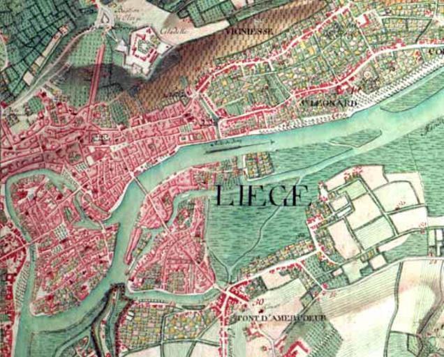 Keywords: Map liege 3.jpg Liège 1775 Carte de Cabinet des Pays-Bas autrichiens La carte de Cabinet des Pays-Bas autrichiens a été levée sous la direction du comte de Ferraris entre 1770 et 1777 Il s'agit d'un document militaire réalisé en trois exemplaires et dont l'échelle originale est 1 / 11 520 La carte est entièrement manuscrite et procède de levers sur le terrain L'adjonction de la principauté de Liège fait suite à la décision du 3 mars 1774 Cette carte mieux connue sous le nom de carte de Ferraris constitue incontestablement un des documents cartographiques les plus précieux que nous possédions pour la seconde moitié du XVIIIe siècle PD-old Maps of Liège in the 18th century 1775 Ferraris Liège Prince-Bishopric of Liège |
