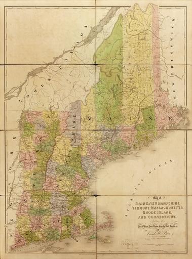 | Keywords: Map of Maine, New Hampshire, Vermont, Massachusetts, Rhode Island, and Connecticut WDL9592.png Artwork ru Бу Дэвид Г 1803-1875 гг fr Burr David H 1803-1875 en Burr David H 1803-1875 zh 大卫·伯尔,1803-1875 年 pt Burr David H 1803-1875 ar ديفيد بور، 1803-1875 es Burr David H 1803-1875 ru Ка та штатов эн ью-Гэмпши Ве монт ассачусетс Род-Айленд и Коннектикут fr Carte du Maine du New Hampshire du Vermont du Massachusetts du Rhode Island et du Connecticut en Map of Maine New Hampshire Vermont Massachusetts Rhode Island and Connecticut zh 缅因州 新罕布 尔州 佛蒙特州 马萨诸塞州 罗得岛州和康涅狄格州 图 pt Mapa de Maine New Hampshire Vermont Massachusetts Rhode Island e Connecticut ar خريطة ولايات ماين، نيو هامبشاير، فيرمونت، ماساتشوسيتس، رود أيلاند، وكونيتيكت ru Дэвид Г Бу 1803 1875 гг землеме и ка тог аф служил топог афом Почтового депа тамента США в 1832 1838 гг и геог афом Палаты п едставителей в 1838 1847 гг Под уководством гене ального почтмейсте а Бу соби ал от почтмейсте ов всей ст аны инфо мацию о т анспо тных ма ш утах почтовых т актах железных до огах и каналах а также о асположении почтовых отделений с целью выпуска большого комплекта госуда ственных и егиональных ка т Опубликованный в 1839 г известной лондонской ка тог афической фи мой Джона Э оусмита <em> Аме иканский атлас </em> Бу а п едставлял под обную ка тину заселения и т анспо тных ма ш утов в Соединенных Штатах Аме ики за несколько десятилетий до Г ажданской войны Здесь п едставлена составленная Бу ом ка та шести штатов овой Англии одна из 13 ка т атласа Г аница между штатом эн и п овинцией ью-Б ансуик Канада не была установлена до заключения догово а Уэбсте а Ашбе тона в 1842 г таким об азом на ка те показаны в качестве севе ной части штата эн земли кото ые впоследствии были пе еданы Канаде а ка те также отоб ажено аннее азвитие Бостона как до ожного и железнодо ожного т анспо тного узла <br>Каналы; овая Англия; Почтовые т акты; Почтовая служба; Железные до оги fr Géomètre et cartographe David H Burr 1803-1875 fut topographe au Département des Postes des États-Unis entre 1832 et 1838 puis géographe à la Chambre des représentants entre 1838 et 1847 Sous la direction du Maître des postes général Burr compila les informations fournies par les maîtres des postes à travers le pays concernant les routes routes postières chemins de fer et cours d'eau et l'emplacement des bureaux de poste afin de réaliser une importante série de cartes des États et des régions Publié en 1839 par l'éminente société cartographique de John Arrowsmith <em>L'atlas américain</em> de Burr représente de façon détaillée la répartition du peuplement et du transport aux États-Unis quelques dizaines d'années avant la guerre de Sécession La carte de Burr exposée ici représentant les six États de la Nouvelle-Angleterre fait partie des 13 cartes de l'atlas La frontière entre le Maine et le Nouveau-Brunswick au Canada ne fut établie qu'à la conclusion du traité Webster-Ashburton de 1842 La carte montre donc comme appartenant au nord du Maine des terres qui furent par la suite cédées au Canada Elle montre également les premières phases de développement de Boston en tant que centre routier et ferroviaire <br>Canaux; Nouvelle-Angleterre; Routes postières; Service postal; Chemins de fer en David H Burr 1803 75 was a surveyor and cartographer who served as topographer to the United States Post Office Department in 1832 38 and as geographer to the House of Representatives in 1838 47 Under the direction of the postmaster general Burr compiled information from postmasters throughout the country about transportation routes post roads railroads and canals and the location of post offices to produce a large set of state and regional maps Published in 1839 by the prominent London mapmaking firm of John Arrowsmith Burr s <em>The American Atlas</em> offers a detailed picture of settlement and transportation patterns in the United States in the decades before the Civil War Shown here is Burr s map of the six New England states one of 13 maps in the atlas The border between Maine and New Brunswick Canada was not settled until conclusion of the Webster-Ashburton Treaty of 1842 so the map shows as part of northern Maine lands that subsequently were ceded to Canada The map also indicates the early development of Boston as a road and rail hub <br>Canals; New England; Post roads; Postal service; Railroads zh 大卫·伯尔(David H Burr,1803-1875 年)是 位测量员和制图员,于 1832 1838 年担任美国邮政署 形学 ,1838 1847 年担任众议院 理学家 邮政署长的指导下,伯尔汇编了全国各 邮政 长提供的 关运输路线(邮路 铁路和运河)以及邮 位置的信息,制 了大量州 图和 区 图 伯尔的 美国 图册 由伦敦著名制图商约翰·阿罗史密斯 John Arrowsmith 于 1839 年出版,详细描绘了美国 内