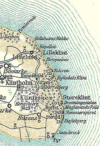 Keywords: Map - Moens Klint.jpg da Kort over Møns Klint <br/>en Map of the Cliffs of Møn in Denmark Frems Amtskort over Danmark ca 1900 Fotolitograferede i Generalstabens Topografiske Afdeling PD-old used in da Møns Klint Maps of counties of Denmark from Frems Amtskort over Danmark c 1897 “1904 Møn |