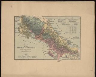 | Keywords: Map of the Republic of Costa Rica WDL11319.png  Artwork ru Рами ес Фаустино  онтес де Ока 1862-1902 гг fr Ramirez Faustino Montes de Oca 1862 1902 en Ramirez Faustino Montes de Oca 1862 1902 zh 福斯蒂诺·蒙特斯·德·奥卡·拉米雷斯,1862-1902 年 pt Ramirez Faustino Montes de Oca 1862 1902 ar راميريز، فاوستينو مونتيز دي أوكا، 1862 1902 es Ramírez Faustino Montes de Oca 1862 1902 ru Ка та Республики Коста-Рика fr Carte de la République du Costa Rica en Map of the Republic of Costa Rica zh 哥斯达黎加共和国 图 pt Mapa da República da Costa Rica ar خريطة جمهورية كوستاريكا ru  а этой ка те Коста-Рики выпущенной в 1891 году показаны основные геог афические особенности и админист ативное деление ст аны Условные обозначения в п авом ве хнем углу ка ты п иведены на испанском и английском языках  а ка ту нанесены столица Коста-Рики Сан-Хосе админист ативные цент ы  егионов к упные и более мелкие го ода и железные до оги находившиеся в эксплуатации в п оцессе ст оительства или п оекти ования а также имеющие обозначение заключен догово на ст оительство будет пост оена в ближайшее в емя Ка та соде жит циф овые обозначения самых высоких го вулканов и к ате ов с  асшиф овкой и с указанием их высоты в футах и мет ах эти данные неточны Семь п овинций ст аны  Алахуэла Ка таго Гуанакасте Э едия Лимон Пунта енас и Сан-Хосе  выделены на ка те  азличными цветами Поскольку Республика Панама была об азована только в 1903 году с юга Коста-Рика на этой ка те г аничит непос едственно с Колумбией Севе ная г аница отделяющая ст ану от  ика агуа об азована озе ом  ика агуа и  екой Сан-Хуан Ка та была составлена топог афом Фаустино  онтесом де Ока Рами есом 1862-1902 гг и выпущена компанией William M Bradley Company  известным издательством конца XIX века из Филадельфии специализи овавшимся на выпуске геог афических ка т и атласов fr Cette carte du Costa Rica datant de 1891 montre les principales caractéristiques physiques et les divisions administratives du pays La légende dans l'angle supérieur droit est écrite en espagnol et en anglais La carte inclut la capitale du pays San José les capitales provinciales les principales villes et les villes secondaires ainsi que les voies ferrées opérationnelles en construction en projet et « prévues par contrat et prochainement construites » La légende numérotée répertorie les montagnes les volcans et cratères les plus élevés et leur hauteur inexacte est indiquée en pieds et en mètres Des couleurs différentes permettent de distinguer les sept provinces du pays  Alajuela Cartago Guanacaste Heredia Limón Puntarenas et San José Le Costa Rica borde directement la Colombie au sud car la République du Panama fut seulement établie en 1903 Le lac Nicaragua et le fleuve San Juan forment la frontière nord avec le Nicaragua La carte fut tracée par le cartographe Faustino Montes de Oca Ramirez 1862 1902 et publiée par William M  Bradley  Company éminente maison d'édition de cartes et d'atlas au XIX<sup>e</sup> siècle basée à Philadelphie en This 1891 map of Costa Rica shows the main physical features and administrative divisions of the country The key in the upper-right-hand corner is in Spanish and English Indicated on the map are the national capital San José; provincial capitals; principal cities; minor cities; and railroads in operation under construction projected and contracted for and soon to be built The highest mountains volcanoes and craters are indicated by the numbered key and their heights given inaccurately in both feet and meters The country s seven provinces Alajuela Cartago Guanacaste Heredia Limón Puntarenas and San José are shown and distinguished by different colors Costa Rica is shown as bordering directly on Colombia to the south as the Republic of Panama was not established until 1903 The northern border with Nicaragua is formed by Lake Nicaragua and the San Juan River The map was drawn by surveyor Faustino Montes de Oca Ramirez 1862 1902 and issued by William M Bradley Company a prominent late-19th century publisher of maps and atlases based in Philadelphia zh 这幅 1891 年的 图展示了哥斯达黎加主要的 理特征和行政区划, 图右上角的图例标示使用西班牙语和英语两种语  图中显示了首都 何塞  会城市 主要城市 次级城市和铁路(运营中  建 规划中 以及 承包并即将动工 )  高山峰 火山和火山口都分别使用编号项给予了标注,并分别采用英尺和米标明高度(不准确)  图用不同 色区分哥斯达黎加的七 :阿拉胡埃拉  卡塔戈   纳卡斯特  埃雷迪亚  利蒙  蓬塔雷纳斯 和 何塞   图中哥斯达黎加南部与哥伦比亚直接接壤,因为巴拿马共和国直到 1903 年才建国 北部与尼加拉 相邻的国界是由尼加拉 湖和 胡安河形成的 该 图由勘测员福斯蒂诺·蒙特斯·德·奥卡·拉米雷