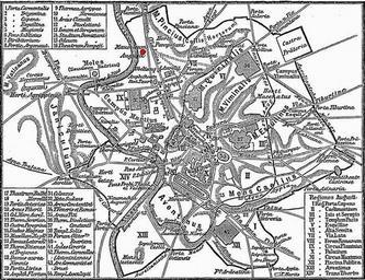Keywords: Map Rome Augustus mausoleum.JPG In ancient Rome location of Augustus Mausoleum in red Personnal work on old map in the Commons 2006-02-20 own assumed Ursus Mausoleo d'Augusto Rome Old maps of ancient Rome city