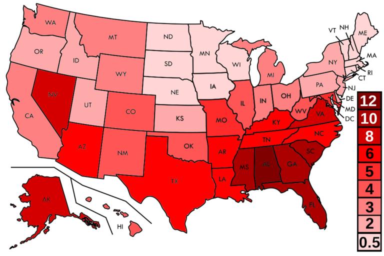 | Keywords: Map of US Murder Rate in 1955.svg en Map of US murder rate in 1955 http //www cdc gov/nchs/data/vsus/vsrates1940_60 pdf Data pgs 661 662 See File Map of US Murder Rate in 1940 svg for data 2016-04-01 own Delphi234 other versions cc-zero Maps of crime statistics for the United States |