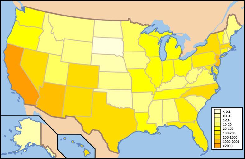 Keywords: Map of US Photovoltaics.svg en Map of installed capacity of photovoltaics MWp in each state of the United States in 2013 Data fromhttp //www irecusa org/wp-content/uploads/2014/07/Final-Solar-Report-7-3-14-W-2-8 pdf page 29 2014-06-03 own Delphi234 cc-zero Uploaded with UploadWizard Solar energy in the United States Maps with language-neutral legends |