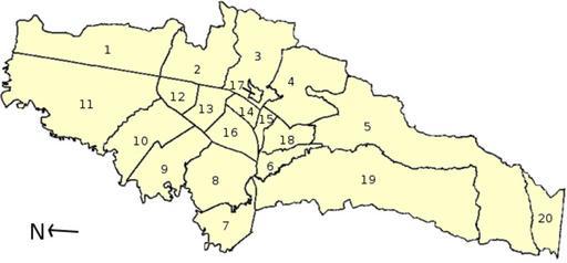 | Keywords: Mapa administrativa Bogota.png Administrative map of Bogotá svg Administrative Gliederung von Bogotá Kolumbien / Municipalities of Bogotá Colombia / Localidades de Bogotá Colombia 1 - Usaquén 2 - Chapinero 3 - Santafé 4- San Cristóbal 5 - Usme 6 - Tunjuelito 7 - Bosa 8 - Kennedy 9 - Fontibón 10 - Engativá 11 - Suba 12 - Barrios Unidos 13 - Teusaquillo 14 - Los Mártires 15 - Antonio Nariño 16 - Puente Aranda 17 - La Candelaria 18 - Rafael Uribe 19 - Ciudad Bolívar 20 - Sumapaz own 2006-05-24 Louise Wolff darina Maps of localities districts of Bogotá |