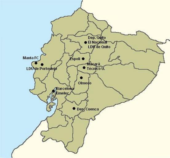 Keywords: Mapa Serie A Ecuador 2009.jpg es Los 12 equipos participantes en el Campeonato ecuatoriano de fútbol con las ciudades donde hace de local own AJ Azul 2009-08-15 Maps of Ecuador