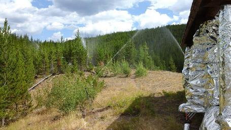 | Keywords: yellowstone national park yellowstonenationalpark maple fire maplefire wildland fire wildlandfire outdoor landscape hill Protecting the Cougar Creek patrol cabin during the Maple Fire August 12, 2016. NPS Photo Protecting the Cougar Creek patrol cabin during the Maple Fire August 12, 2016. NPS Photo |
