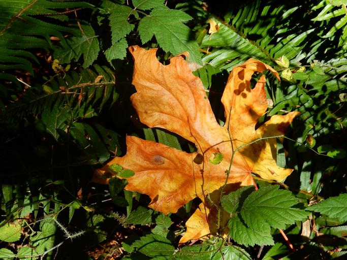 Keywords: maple leaf landmark canada brown green leaf withered sun autumn