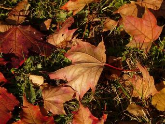 Keywords: maple maple leaf autumn leaf leaves colorful color bright red yellow deris grass meadow