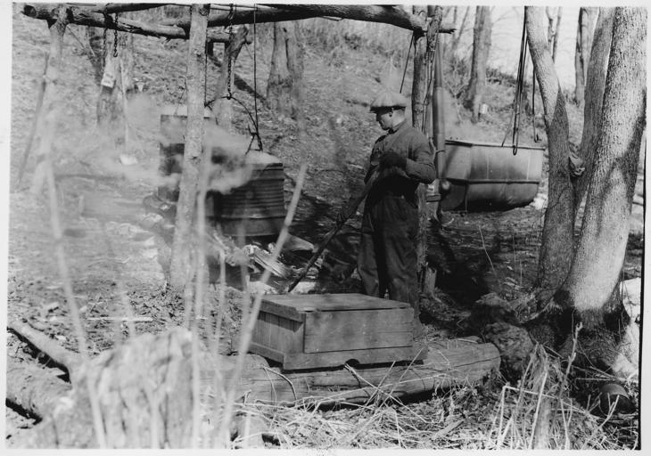 | Keywords: Maple sugar industry - NARA - 285761.jpg Scope and content Showing tent tipi birch bark containers for catching sap and boiling sap General notes 285761 Local identifier Department of the Interior Bureau of Indian Affairs Red Lake Agency 1964 NARA's Central Plains Region Kansas City NREA 400 West Pershing Road Kansas City MO 64108 1939 Record group Record Group 75 Records of the Bureau of Indian Affairs 1793 - 1999 Record group ARC 404 Red Lake Agency Photographs compiled 1910 - 1965 Series ARC 285700 File unit File unit ARC Variant control numbers NAIL Control Number NRE-75-RL PHO -1073 Other versions <gallery> File Maple_sugar_industry_-_NARA_-_285761 tif tif File Maple_sugar_industry_-_NARA_-_285761 jpg jpg </gallery> NARA-cooperation PD-USGov Maple sugar 04 Native American cuisine Maple Red Lake Indian Reservation 1930 1939 in Minnesota NARA images of Minnesota Black and white photographs of Minnesota 1930 Maple sugar production |