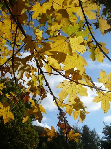 Keywords: maple tree leaves autumn nature sky landscapes clouds