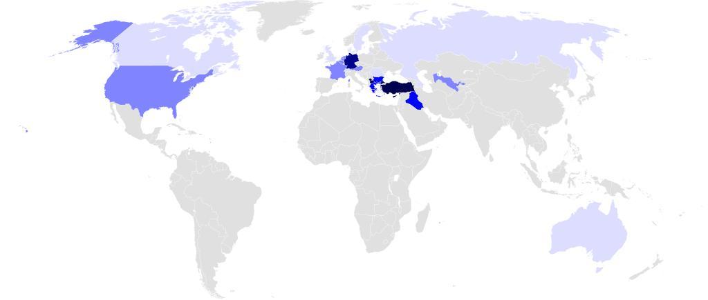 | Keywords: MapOfTurkishSpeakers-vector.svg  Turkish speakers in the countries of the world by shades of blue based on Image BlankMap-World png The map shades the whole area within the national borders of each country with the colors defined in the legend below Numbers are partly based on Gordon Raymond G Jr ed 2005 Ethnologue Languages of the World Fifteenth edition http //www ethnologue com/show_language asp code tur Further references for the numbers are to be found at the end of Turkish diaspora article on the English Wikipedia Legend legend 000250 Official language Turkey Cyprus Macedonia at the municipal level Kosovo at the municipal level 00038c More than 1 000 000 speakers Germany 0006fc Between 500 000 - 1 000 000 speakers Bulgaria Iraq Greece 8184ff Between 100 000 - 500 000 speakers France Netherlands Belgium Austria United States Uzbekistan dddeff Between 25 000 - 100 000 speakers United Kingdom Australia Azerbaijan Canada Russia Sweden Denmark Switzerland Romania b9b9b9 Less than 25 000 speakers/No speakers Other countries τουρκόφωνους  ληθυσμούς με α οχρώσεις του μ λε βασισμένος στον Image BlankMap-World png Οι σκιές στο χάρη καταλαμβάνουν όλη την  εριοχή κάθε χώρας με τα χρώματα  ου καθορίζονται στη λεζάντα  ου ακολουθεί Τα νούμερα βασίζονται εν μέρει στο Gordon Raymond G Jr ed 2005 Ethnologue Languages of the World Fifteenth edition http //www ethnologue com/show_language asp code tur Λεζάντα legend 000250 Ε ίσημη γλώσσα Τουρκία Κύ ρος ΠΓΔ της  ακεδονίας σε δημοτικό ε ί εδο Κόσοβο σε δημοτικό ε ί εδο 00038c Πάνω α ό 1 000 000 ομιλητές Γερμανία 0006fc Ανάμεσα σε 500 000 και 1 000 000 ομιλητές Βουλγαρία 8184ff Ανάμεσα σε 100 000 και 500 000 ομιλητές Γαλλία Ολλανδία Βέλγιο Αυστρία ΗΠΑ Ουζμ εκιστάν dddeff Ανάμεσα σε 25 000 και 100 000 ομιλητές Ελλάδα Ηνωμένο Βασίλειο Αυστραλία Αζερμ αϊτζάν Καναδάς Ρωσία Σουηδία Δανία Ελβετία Ρουμανία b9b9b9 Λιγότεροι α ό 25 000 ομιλητές ή καθόλου ομιλητές Οι υ όλοι ες χώρες Türkisch-Sprecher auf der Welt in blauen Farbabstufungen basierend auf Image BlankMap-World png The map shades the whole area within the national borders of each country with the colors defined in the legend below Numbers are partly based on Gordon Raymond G Jr ed 2005 Ethnologue Languages of the World Fifteenth edition http //www ethnologue com/show_language asp code tur Further references for the numbers are to be found at the end of Turkish diaspora article on the English Wikipedia Legende legend 000250 Amtssprache Türkei Zypern Mazedonien regional Kosovo regional 00038c Mehr als 1 000 000 Sprecher Deutschland 0006fc Zwischen 500 000  1 000 000 Sprecher Bulgarien Irak Griechenland 8184ff Zwischen 100 000  500 000 Sprecher Frankreich Niederlande Belgien Österreich Vereinigte Staaten Usbekistan dddeff Zwischen 25 000  100 000 Sprecher Großbritannien Australien Aserbaidschan Kanada Russland Schweden Dänemark Schweiz Rumänien b9b9b9 Weniger als 25 000 Sprecher/keine Andere Länder Turks sprekenden in de landen van de wereld met tinten van de kleur blauw gebaseerd op Image BlankMap-World png De kaart kleurt het hele gebied binnen de nationale grenzen van elk land met de kleuren die zijn gedefinieerd in de legenda hieronder Nummers zijn gedeeltelijk gebaseerd op Gordon Raymond G Jr ed 2005 Ethnologue Languages of the World Vijftiende editie http //www ethnologue com/show_language asp code tur Verdere verwijzingen voor de nummers zijn te vinden aan het einde van het artikel Turkse diaspora in de Engelstalige Wikipedia Legenda legend 000250 Officiële taal Turkije Cyprus Macedonië op gemeentelijk niveau Kosovo op gemeentelijk niveau 00038c Meer dan 1 000 000 sprekers Duitsland 0006fc Tussen 500 000 - 1 000 000 sprekers Bulgarije Irak Griekenland 8184ff Tussen 100 000 - 500 000 sprekers Frankrijk Nederland België Oostenrijk Verenigde Staten Oezbekistan dddeff Tussen 25 000 - 100 000 sprekers Verenigd Koninkrijk Australië Azerbeidzjan Canada Rusland Zweden Denemarken Zwitserland Roemenië b9b9b9 Minder dan 25 000 sprekers / geen De overige landen língua turca nos países do mundo em tons de azul com base na Image BlankMap-World png Os tons do mapa estão em toda a área dentro das fronteiras nacionais de cada país com as cores definidas na legenda abaixo Os números são parcialmente baseados em Gordon Raymond G Jr ed 2005 Ethnologue Languages of the World edição XV http //www ethnologue com/show_language asp code tur Outras referências para os números podem ser encontrados no final do artigo Diaspora Turca na Wikipédia em Inglês Legenda legend 000250 Língua oficial Turquia Chipre Macedônia a nível municipal e Kosovo a nível municipal ; 00038c Mais de 1 000 000 de falantes Alemanha; 0006fc Entre 500 000 e 1 000 000 falantes Bulgária Iraque e Grécia; 8184ff Entre 100 000 e 500 000 falantes França Países Baixos Bélgica Áustria Estados Unidos e Uzbequistão; dddeff Entre 25 000 e 100 000 falantes Reino Unido Austrália Azerbaijão Canadá Rússia Suécia Dinamarca Suíça e Romênia; b9b9b9 Menos de 25 000 falantes/nenhum falante Demais países Turski nijanse plave pokazuje broj osoba koji govore Image BlankMap-World png napravio koristeći kartu Cijelo je područje unutar granica svake države sljedeće definicije su ispunjene bojama Broj zemalja prvenstveno za tursko-govornog ljudi Gordon Raymond G Jr ur 2005 Narodoznanstvo jezicima svijeta Petnaesti izdanje http //www ethnologue com/show_language asp code tur izvor je korišten Ostali izvori Tur