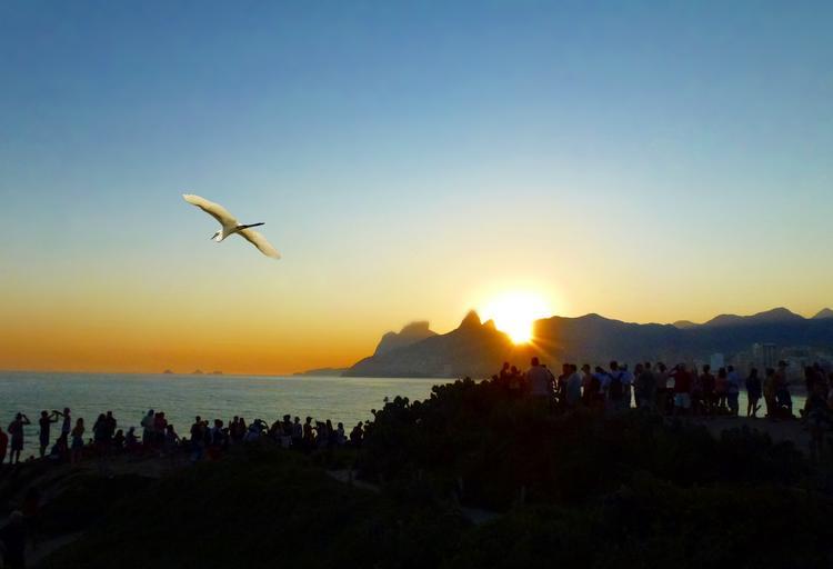 Keywords: mar ocean beach orla litoral rio de janeiro brazil water bird heron tropical birds rocks rock island west sunset against light urban city birds landscape mountains nature serra depth contemplation rest visual holidays ride