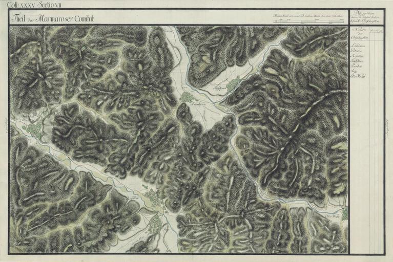 | Keywords: Maramureş Josephinische Landesaufnahme pg35-07.jpg wikitable style margin 1em auto 1em auto width 80 Name shown on the map<br>Nume din hartă Administrative unit<br>Unitate administrativă Romanian name<br>Numele românesc Hungarian name<br>Numele unguresc German name<br>Numele german Ukrainian name<br>Numele ucrainian Country today<br>Ţara de astăzi - Leordina Maramureş Leordina Leordina Leordina Romania - Rossllia Comitatul Maramureş Rozavlea Rozávlya Rozavlea Romania - Ruszkova Comitatul Maramureş Ruscova Visóoroszi Oroszfalu Ruszkova Русково Рускова Romania - Saje Comitatul Maramureş Şieu Sajó Romania - Szurdok Comitatul Maramureş Strâmtura Szurdok Romania - Alsó Wissó Comitatul Maramureş Vişeu de Jos Alsóvisó Unterwischau ижній Вншава Romania - clear Maramureş County 1769-1773 Josephinische Landesaufnahme pg 35-07 Harta Iosefină a Maramureşului 1769-1773 Josephinische Landesaufnahme pg 35-07 Österreichisches Staatsarchiv Kriegsarchiv Historische Militärkarte der österreichisch-ungarischen Monarchie 1782-1785 PD-old-100 Clickable Map of the Maramureş County MáramarosCountyJosephinischeLandesaufnahme Josephinische Landaufnahme Strâmtura Maramureș Rozavlea Maramureş Leordina Ruscova Maramureş Șieu Maramureș Vişeu de Jos |