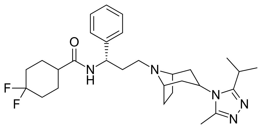 Keywords: Maraviroc.svg Skeletal formula of maraviroc Created using http //www acdlabs com/download/chemsk html ACD/ChemSketch 10 0 and Inkscape Own 2007-04-11 Fvasconcellos 01 02 12 April 2007 UTC Maraviroc