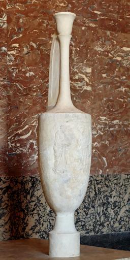 | Keywords: Marble lekythos Louvre Ma3403.jpg Marble funerary lekythos Pentelic marble ca 400 BC found between Athens and the Cape of Sounion Lécythe funéraire en marbre Marbre du Pentélique v 400 av J -C découvert entre Athènes et le cap Sounion H 83 cm 32 ½ in Museum Louvre Department of Greek Etruscan and Roman antiquities Denon ground floor room 31 20216 object history credit line Purchase 1898 accession number Ma 3403 MNC 2281 Jastrow 2006 other versions Greek antiquities in the Louvre - Room 31 Death in ancient Greece Marble lekythoi Pentelic marble sculptures |