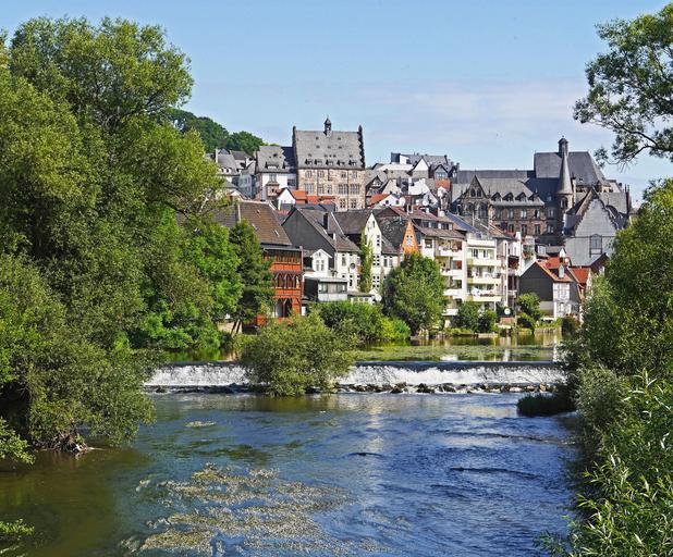 Keywords: marburg lahn weir upper town town hall historically river hesse city view germany university city waterfall