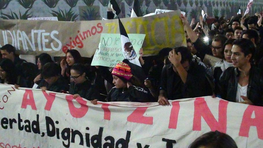 | Keywords: Marcha “Júrame que no te rindes” 34.jpg es Contingente de estudiantes del Tec de Monterrey en la marcha Júrame que no te rindes por los 43 normalistas desaparecidos en Iguala Guerrero En carteles expresan sus demandas El contingente marcha sobre la avenida Eje Central en el bajo puente debajo de la avenida Paseo de la Reforma Forma parte en la caravana Julio César Mondragón Fontes desde Tlatelolco hasta el Centro Histórico de la Ciudad de México México 2014-11-20 18 38 41 own Lameirasb other versions cc-zero Ayotzinapa protests Nov 20 Mexico City project Lameirasb Protests related to the forced kidnapped of 43 students in Ayotzinapa Acción Global por Ayotzinapa Uploaded with UploadWizard Template Wiki Borregos file donated Fall 2013 |