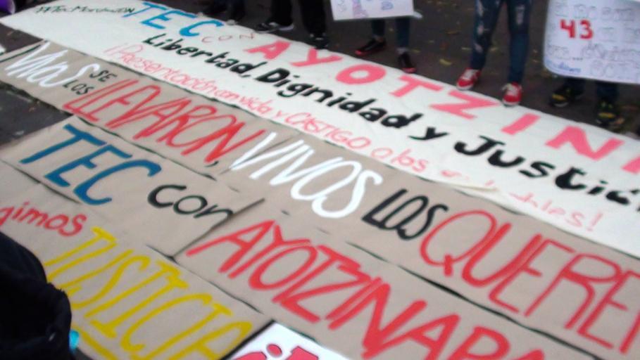 | Keywords: Marcha “Júrame que no te rindes” 09.jpg es Todas las mantas y carteles del contingente de estudiantes del Tec de Monterrey en la marcha Júrame que no te rindes por los 43 normalistas desaparecidos en Iguala Guerrero En los carteles se expresan las demandas de los estudiantes El contingente está en la Plaza de las Tres Culturas para salir con caravana Julio César Mondragón Fontes que marchó desde Tlatelolco hasta el Centro Histórico de la Ciudad de México México 2014-11-20 17 43 00 own Lameirasb other versions cc-zero Ayotzinapa protests Nov 20 Mexico City project Lameirasb Protests related to the forced kidnapped of 43 students in Ayotzinapa Acción Global por Ayotzinapa Uploaded with UploadWizard Template Wiki Borregos file donated Fall 2013 |