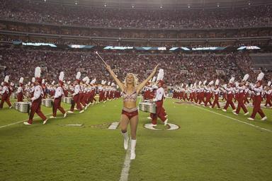 Keywords: marching band college american football music baton twirler field school alabama university entertainment performance choreographed students halftime precision