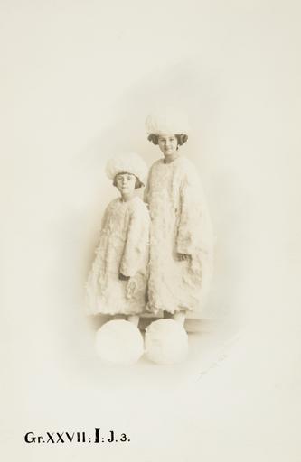 Keywords: Margit och Erik von Geijer som snöbollar, 1919 - Hallwylska museet - 107988.tif LSH artwork sv FOTOGRAFIER m m FRÅN JULAFTNAR firade med familjen von Geijer 1 Från år 1913 på Wegeholm Fotografi Av Margit och Erik von Geijer som småbarn I högra nedre hörnet signerat Emil Bruno Hälsingborg Höjd 19 cm; bredd 11 cm Gåva till Wilhelmina von Hallwyl januari eller februari 1914 från hennes dotter Irma 2 Från år 1914 på Wegeholm Julgransflagga svensk Av silkespapper med stång av ståltråd Längs korsets horisontala del med svart bläck skrivet Hopp och Trohet Jul 1914 Längd 13 cm bredd 7 cm Stång längd 12 cm Gåva till Walther von Hallwyl Julaftonen 1914 från hans dotterdotter och dotterson Margit och Erik von Geijer Julgransflagga svensk och två fotografier Flagga Som den nyss beskrivna Fotografier På kort 1 Margit von Geijer som Svea stående med utslaget hår i fotsid vit dräkt med slöja pannband mörkt axelband och sandaler i högra handen Sveriges flagga med stången stödd mot marken i vänstra handen riksskölden med Lilla riksvapnet Tre kronor På kort 2 Erik von Geijer som tomte På båda i högra nedre hörnet signerat Emil Bruno Hälsingborg Kort 1 höjd 17 5 cm bredd 7 5 cm Kort 2 höjd 17 7 cm bredd 7 5 cm Gåva till Wilhelmina von Hallwyl Julaftonen 1914 från hennes dotterdotter och dotterson Margit och Erik von Geijer För beskrivning av julfirandet på Wegeholm se detta inv nummer i katalogverket Flaggorna inköpta av Irma von Geijer hos en handlare i Hälsingborg Fotografierna tagna Januari 1915 hos fotografen Emil Bruno Helsingborg 3 Från år 1915 på Wegeholm Solros Helianthus Av silkespapper och sammet med stjälk av ståltråd Blomkorg av gult kräpperat papper samt brun sammet stjälken lindad med grönt papper med foderblad och tre stjälkblad av dylikt papper Stjälk längd 31 cm Blomma diameter 14 cm Gåva till Walther von Hallwyl Julaftonen 1915 från hans dotterdotter och dotterson Margit och Erik von Geijer Solros Helianthus och två fotografier Solros Som den nyss beskrivna Fotografier På kort 1 Margit och Erik von Geijer stående hand i hand; båda klädda till änglar I högra nedre hörnet signerat Emil Bruno Hälsingborg Höjd 11 8 cm bredd 16 7 cm På kort 2 Samma barn stående i de s k arkaderna framför en dörr på Wegeholms borg samt hållande i dragstången till en blomstersmyckad liten vagn; båda klädda som på kort 1 Gåva till Wilhelmina von Hallwyl f Kempe julaftonen 1915 från Margit och Erik Geijer För detaljer om julfirandet se detta inv nr i katalogverket Fotografierna tagna Februari 1916 av fotografen Emil Bruno Helsingborg 4 Från år 1916 på Wegeholm Docka Lockigt ljusgult hår blåa ögon och röda läppar; clownkostym med bred krage och toppig mössa; på kostymen stora blåa rosetter av silkespapper Längd utan mössa 16 5 cm Mössa höjd 3 8 cm Gåva till Walther von Hallwyl julaftonen 1916 från Margit och Erik von Geijer Docka och fotografi Docka Som den nyss beskrivna Fotografi Margit och Erik von Geijer som Pierrette och Pierrot I högra nedre hörnet signerat Emil Bruno Hälsingborg Höjd 17 9 cm Bredd 12 4 cm Gåva till Wilhelmina von Hallwyl f Kempe Julaftonen 1916 från Margit och Erik von Geijer För detaljer om julfirandet se detta inv nr i katalogverket 5 Från år 1917 i Hamngatan 4 Stockholm Stjärna med spira Stjärna av guldpapper spira av trä Längd 34 5 cm Stjärna diameter 12 cm Spira längd 25 cm Gåva till Walther von Hallwyl Julaftonen 1917 från Margit och Erik von Geijer För detaljer om julfirandet se detta inventarienummer i katalogverket Fotografien tagen Februari 1918 av fotografen Herm Hamnqvist Atelier Bruno Södra Storgatan 3 Helsingborg 6 Från år 1918 i Hamngatan 4 Stockholm Penséer två stycken Av vitt s k engelskt skinn bomullssatin med stjälk av ståltråd Pressade samt handmålade i färger den ena med vit och den andra med gul mitt; stjälkarna gröna lindade med tyg som blommorna vardera med ett grönt stjälkblad Längd omkring 18 cm Gåva till Walther von Hallwyl julaftonen 1918 från Margit och Erik von Geijer Penséer två stycken och fotografi Penséer Som de nyss beskrivna Fotografi Margit och Erik von Geijer stående klädda till penséer Till höger om bilderna signerat Ferd Flodin -19 Höjd 22 8 cm Bredd 14 5 cm Gåva till Wilhelmina von Hallwyl Julaftonen 1918 från Margit och Erik von Geijer Penséerna inköpta av Irma von Geijer hos en handlare i Helsingborg Fotografien tagen 28 December 1918 av fotografen Ferd Flodin Hamngatan 3 A Stockholm 7 Från år 1919 i Hamngatan 4 Stockholm Snöboll Av vit bomullsvadd Oregelbundet klotrund utanpå beströdd med frostliknande silverglitter samt utan snöre Genomskärning omkring 4 cm Gåva till Walther von Hallwyl Julaftonen 1919 från Margit och Erik von Geijer Snöboll och fotografi Snöboll Som den nyss beskrivna Fotografi Margit och Erik von Geijer stående vända halvt åt vänster Den förstnämnda till höger båda i stor rund mössa och lång kappa av vadd med glitter samt vita strumpor; framför figurerna två stora snöbollar I högra nedre hörnet signerat Brink Foto Höjd 16 6 cm Bredd 11 2 cm Gåva till Wilhelmina von Hallwyl f Kempe julaftonen 1919 från Margit Johanna och Erik von Geijer För detaljer om julfirandet se detta inv nr i katalogverket Snöbollarna inköpta av Irma von Geijer i Buttericks Mönsteraffär Stockholm Fotografien tagen Januari 1920 av fotografen Gustaf Brink Ängelholm 8 Från år 1920 i Hamngatan 4 Stockholm Skogstomte I form av en brandgul flugsvamp Av tyg bommullsvadd och trä m m Höjd 10 8 cm Hatt diameter 9 1 cm Fotplatta diameter 5 9 cm Gåva till Walther von Hallwyl Julaftonen 1920 från Margit och Erik von Geijer Skogstomte och fotografi Skogstomte Som den nyss beskrivna men röd med vita plättar på svamphatten på kortet vid högra änden målat ett paket under en drypande lacktång Fotografi Margit och Erik von Geijer samt Elionore Joseph alla stående Erik