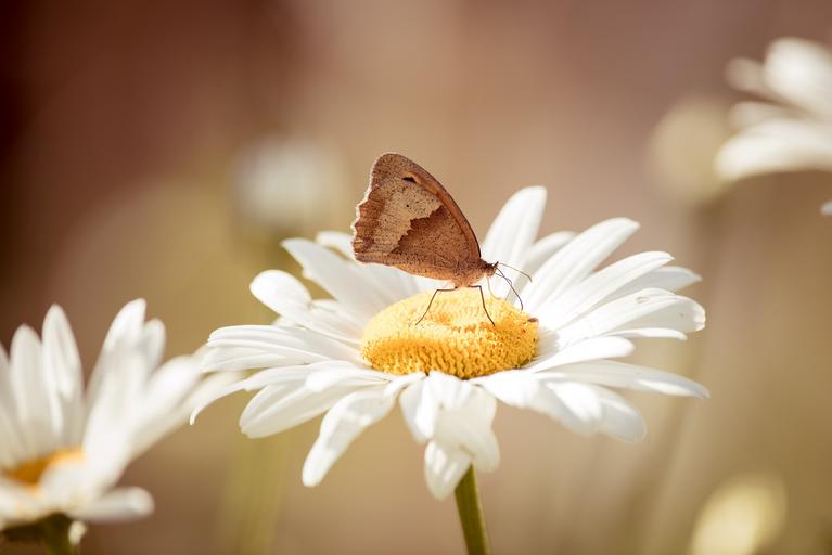 Keywords: marguerite flower white white flower butterfly meadow brown edelfalter flowers petals white blossom nature close landed arrived summer garden in the garden insect flight insect animal