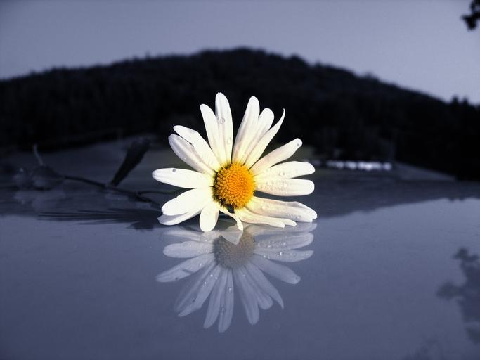 Keywords: marguerite leucanthemum composites asteraceae flower spring summer blossom bloom white mirroring reflection