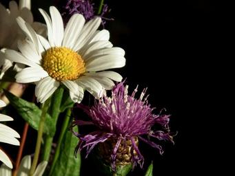 Keywords: marguerite white bloom wild flower purple flower blossom bloom purple flower