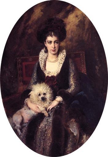 Keywords: Maria Alekseevna Makovskaya by Konstantin Makovsky (1839-1915).jpg en Portrait of the artist's wife Maria Alekseevna Makovskaya née Matavtina 1869-1919 signed in Cyrillic 'K Makovskii' centre right oil on canvas oval 142 x 97 cm http //www christies com/LotFinder/lot_details aspx from searchresults intObjectID 5379970 sid 89fc0e76-e23b-444c-8b59-6be3a7d177c1 Christie's than http //auction-rusenamel ru/items id 104000 Russian enamel Creator Konstantin Makovsky century 19 PD-old-auto 1915 Portraits by Konstantin Makovsky 19th-century portrait paintings with dogs Oval portraits of women Portrait paintings of artist's wife Private collections in Russia Russkaya emal
