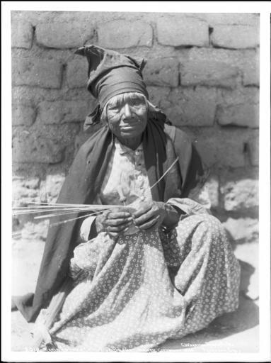 | Keywords: Maria Antonia, a Coahuilla Indian basket maker, at work, California, ca.1899 (CHS-4748).jpg en <br> Maria Antonia a Coahuilla Indian basket maker at work California ca 1899 Photograph of Maria Antonia a Coahuilla Indian basket maker at work California ca 1899 She squats in front of an adobe brick wall with a partially completed basket with her hands She wears a long-sleeved shirt a long skirt a shawl around her shoulders and a handkerchief around her head She has short white hair Call number CHS-4748 Photographer James George Wharton Filename CHS-4748 Coverage date circa 1899 Part of collection California Historical Society Collection 1860-1960 Format glass plate negatives Type images Part of subcollection Title Insurance and Trust and C C Pierce Photography Collection 1860-1960 Repository name USC Libraries Special Collections Accession number 4748 Microfiche number 1-172-; 1-70-22 Archival file chs_Volume98/CHS-4748 tiff Repository address Doheny Memorial Library Los Angeles CA 90089-0189 Geographic subject country USA Format aacr2 3 photographs glass photonegative photoprints b w ; 22 x 17 cm 26 x 21 cm Rights Digitally reproduced by the USC Digital Library; From the California Historical Society Collection at the University of Southern California Subject adlf tribal areas Project USC Repository email specol usc edu Identifying number unidentified no James-2013 Contributing entity California Historical Society Date created circa 1899 Publisher of the digital version University of Southern California Libraries Format aat photographic prints; photographs Geographic subject state California Legacy record ID chs-m17057; USC-1-1-1-13550; USC-1-1-1-13920 Access conditions Send requests to address or e-mail given Phone 213 821-2366; fax 213 740-2343 Subject file heading Indians -- Mission -- Cahuilla; Portraits -- A Subject lcsh Indians of North America; Cahuilla Indians Subject Mission Indians; Cahuilla Indians; Antonia Maria; Coahuilla Indians; Mission Indians -- Basketry circa 1899 date created James George Wharton http //digitallibrary usc edu/cdm/ref/collection/p15799coll65/id/17070 PD-old-70-1923 Images from USC Digital Library uploaded by Fæ California Historical Society Collection 1860-1960 Glass plate negatives Cahuilla Cahuilla baskets Photographs by George Wharton James |