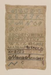 Keywords: Maria Atwater - Sampler - Google Art Project.jpg Maria 6851257 Atwater /collection/cooper-hewitt-national-design-museum/artwork/sampler-maria-atwater/6828610/ 143710 Maria Atwater /artist/maria-atwater/6825658/ 6825658 /collection/cooper-hewitt-national-design-museum/ Cooper-Hewitt National Design Museum 3644669 http //www cooperhewitt org/ /collection/cooper-hewitt-national-design-museum/artwork/sampler-maria-atwater/6828610/ 1800 early 19th century Medium cotton embroidery on linen foundationTechnique embroidered in cross stitch on plain weave By 1968 Mrs Robert T Hoyt1968 Cooper-Hewitt Museum 6828610 False 1850 1968-46-16 http //collection cooperhewitt org/view/objects/asitem/id/143710 Gift of Mrs Robert T Hoyt in memory of Hannah McAllister Sampler 1800 1860 early 19th century False 0 6875 Object sampler-maria-atwater Sampler s H x W 30 5 x 20 3 cm 12 x 8 in Maria Atwater Medium cotton embroidery on linen foundationTechnique embroidered in cross stitch on plain weave By 1968 Mrs Robert T Hoyt1968 Cooper-Hewitt Museum special url_id NQGn9L5XP8E8mQ PD-old-70-1923 Google Art Project works by Maria Atwater Textiles in the Cooper “Hewitt Smithsonian Design Museum 19th-century samplers Google Art Project works in Cooper-Hewitt Smithsonian Design Museum |