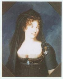 Keywords: Maria Fedorovna by Kügelgen (1801, Russian museum).jpg По т ет импе ат ицы а ии Федо овны в т ау ном платье Изоб ажена в т ау е по мужу импе ато у Павлу I убитому 11 ма та 1801 К плечу на че ном банте п ик еплен к ест о дена Святого Иоанна Ие усалимского В вы езе платья на золотой цепочке п ик еплен медальон с п офильным по т етом Павла I возможно аботы а ии Федо овны Июнь 1801 Холст масло 71x56 Russian Museum object history Поступил в 1919 из ГЭ exhibition history credit line а лицевой сто оне в левом нижнем углу голубой к аской 390 а обо оте холста надпись о ешковыми че нилами пе еложена со ста аго холста на новый 1883 г А Сидо овъ а ве хней планке под амника ка андашом 11/6549; на нижней к асной к аской 7861/Г Р и штамп Г Р инв 7861 номе заче кнут В Каталоге 1980 - 1800-е Дати уется на основании упоминания в письме жены художника мате и от 28 июня 1801 Тепе ь муж исует по т ет импе ат ицы мате и В то в емя как Ге га д исует по т ет с госуда ыни великие княжны ассаживаются в к ужок около мате и и занимаются укоделием а п инцесса акленбу гская помещается обыкновенно позади Ге га да и смот ит за его аботою Семья немцев-художников в России // Исто ический вестник 1906 июль С 193 accession number Ж-4651 place of creation http //www tez-rus net/ViewGood37349 html По т ет повто ялся авто ом и копи овался Г ави ован И С Клаубе ом в 1805 г авю а езцом По свидетельству Д А Ровинского о игинал написан на кости после сме ти Павла I когда Импе ат ица носила т ау ; п инадлежит великому князю Константину иколаевичу Ровинский Д А Под обный слова ь усских г ави ованных по т етов СПб 1887 Т 2 стб 1240 <gallery> File 188Maria Feodorowna jpg Empress Maria Fedorovna in mourning by anonymous after Gerhard von Kügelgen 1801 location unknown File Eutin 2011 36 jpg Empress Maria Fedorovna in mourning by anonymous after Gerhard von Kügelgen Eutin castle Maria Feodorovna by anonymous miniature 19 c Pavlovsk jpg Maria Feodorovna by anonymous Pavlovsk </gallery> Portraits of Maria Feodorovna Sophie Dorothea of Württemberg in mourning Files uploaded by Shakko from various sources Gerhard von Kügelgen 19th-century portraits in the Russian Museum Romanovs PD-old Istorichesky Vestnik Magazines of Russia unidentified year