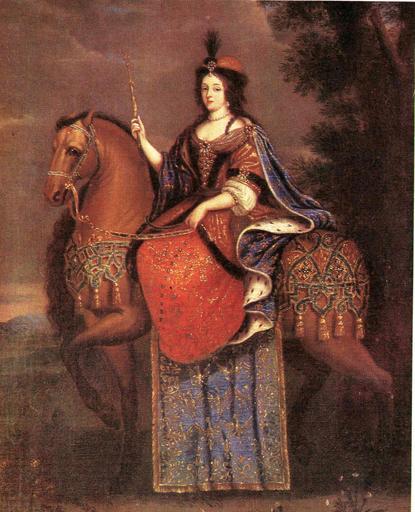 Keywords: Maria Kazimiera Sobieska.jpg Poland Equestrian portrait of Queen Marie Casimire s 1670 Oil on canvas cm 51 40 8 Institution Wilanów Palace Museum Wil 1686 http //www poloniatoday com/images/History14-4 jpg www poloniatoday com other versions <gallery>Anonymous Marie Casimire on horseback jpg</gallery> PD-old-100 DEFAULTSORT 1670s; Queen Marie Casimire 17th-century unidentified painters 17th-century portraits in the Wilanów Palace Portraits of Maria Kazimiera Sobieska 1670s oil on canvas paintings 1670s paintings from Poland 1670s paintings in Poland 1670s portrait paintings 17th-century oil equestrian portraits of women Baroque painters from Poland Baroque paintings of women Baroque portraits of women Coronation portraits of Poland Feathered headdresses in art female Females with pearl necklaces in art Portraits holding sceptres 17th-century women looking at viewer in art People in three-quarter views in art Paintings of people wearing hats Paintings of women with horses Equestrian portraits of queens |